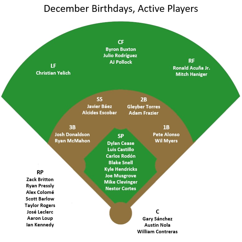 What about an all-time December birthdays dream team? There is lots of talent on the above active stars roster, but many of them are still fairly young. Do some of the veterans like Donaldson, Yelich, or maybe Britton have a chance of making the all-time dream team?