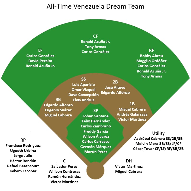 But who else would make an All-Time Dream Team of players born in Venezuela? This is my third write-up in a series during Hispanic Heritage Month in the United States, with the first for players born in Puerto Rico and the second for players born in the Dominican Republic. For Venezuela, here is what I came up with: