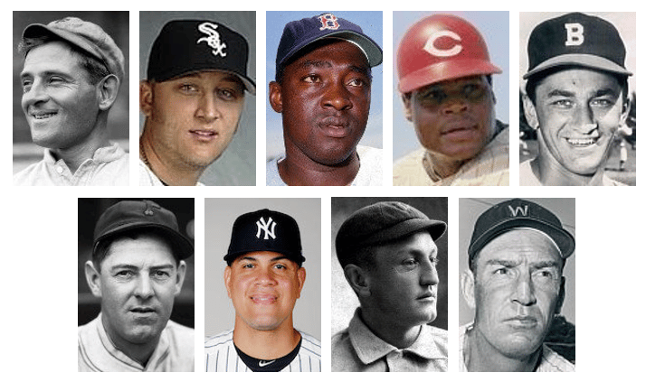 Row 1: Gavy Cravath, Mark Buehrle, George Scott, Lee May, Johnny Logan