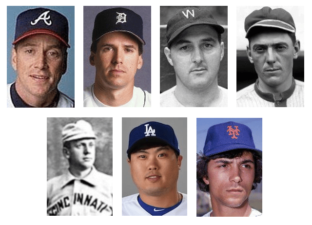 Row 1: Tom Glavine, Travis Fryman, Dutch Leonard, Clyde Milan