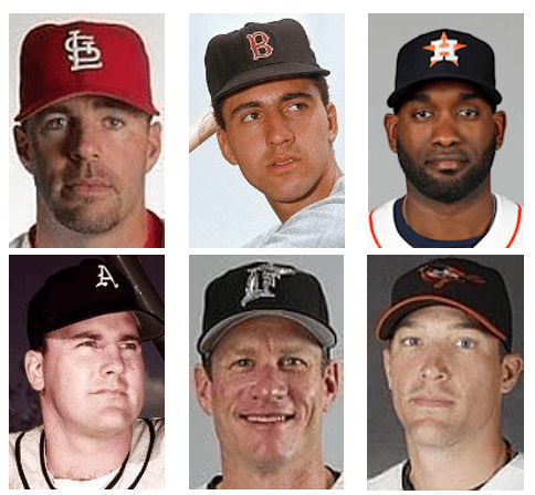 Jim Edmonds (1970) had a 17-year career, mostly with the Angels and Cardinals. He was both a power hitter and an outstanding defensive CF. He hit 25+ HR ten times, scored 100+ runs four times, and posted 100+ RBI four times. A four-time All-Star, Edmonds took home eight Gold Glove Awards. Overall for his career he had 393 HR, 1,251 runs, 1,199 RBI, a .284/.376/.527 slash line, and a 132 OPS+.