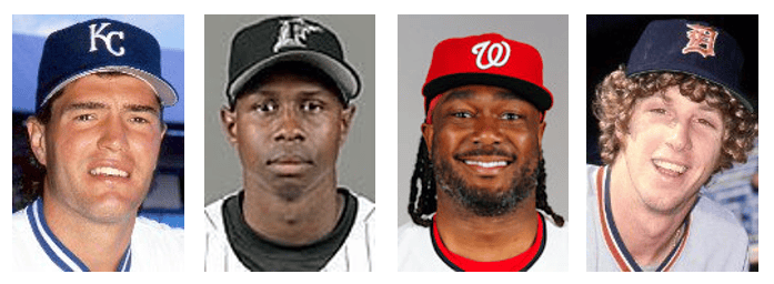 Mark Fidrych (1954) was drafted by the Tigers in the 10th round in 1974. He had a solid but not overpowering season in the minors in 1975, and then took the majors by storm in 1976, earning the AL starting pitcher spot on the All-Star team, winning the AL Rookie of the Year Award, and coming in second in the AL Cy Young Award voting after going 19-9 with an AL-leading 2.34 ERA and 24 complete games. Nicknamed “the Bird,” it wasn’t just his numbers that enthralled fans that year, it was his approach and antics on the mound, such as talking to the ball, walking in circles after every out, and patting down the mound. Unfortunately, injuries came as soon as spring training of the following season, and he would only pitch a total of 27 games from 1977-1980.